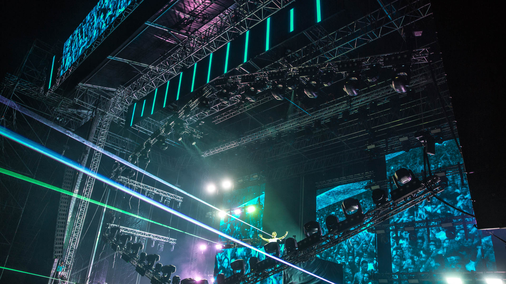 The MR5 roof was built on MT2 towers that reach up to 12.5 metres in height and are made of robust Truss M390 QTKT. The basic structure for the frame is made up of M950 RTTH construction. In addition, the Truss M950 Fold Series was used in the roof, which can be easily folded and unfolded to save space during transport or storage. The roof has a large 31 x 18-meter footprint and a high load capacity of 24,000 kg UDL, allowing for heavy sound and lighting systems to be installed seamlessly.