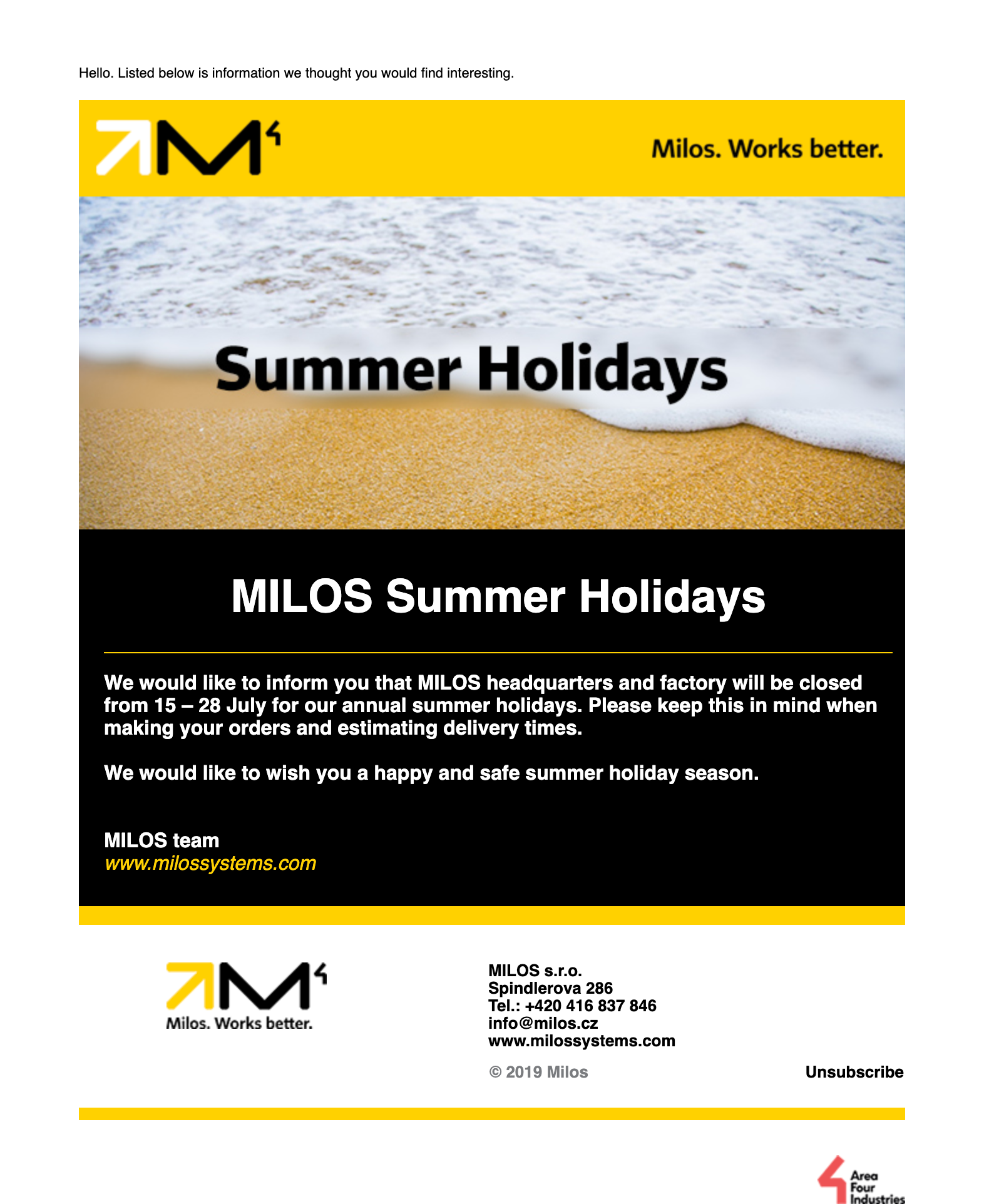 If you would like to keep updated on all news and events in the world of Milos, enter your e-mail address in the box below.