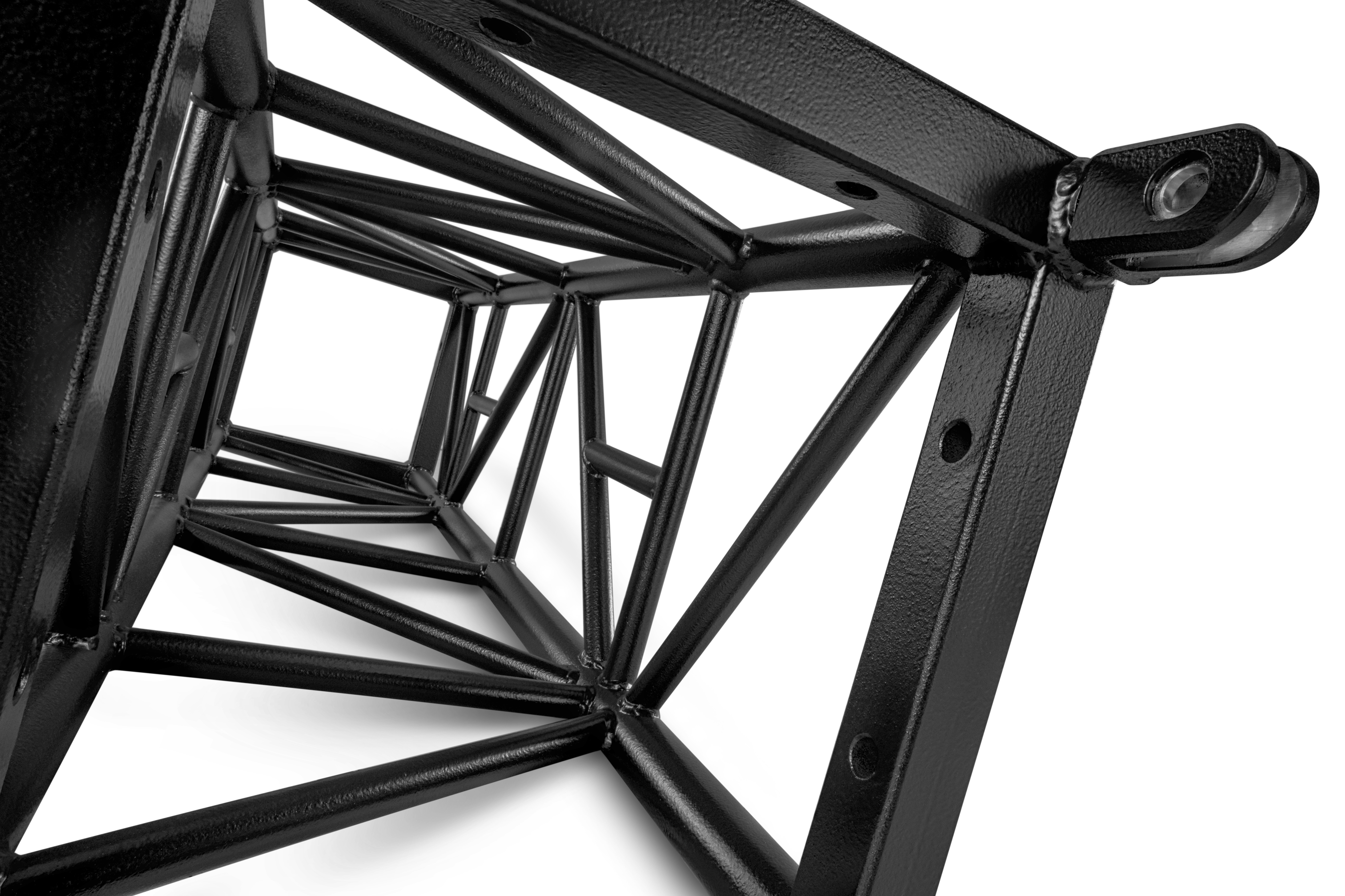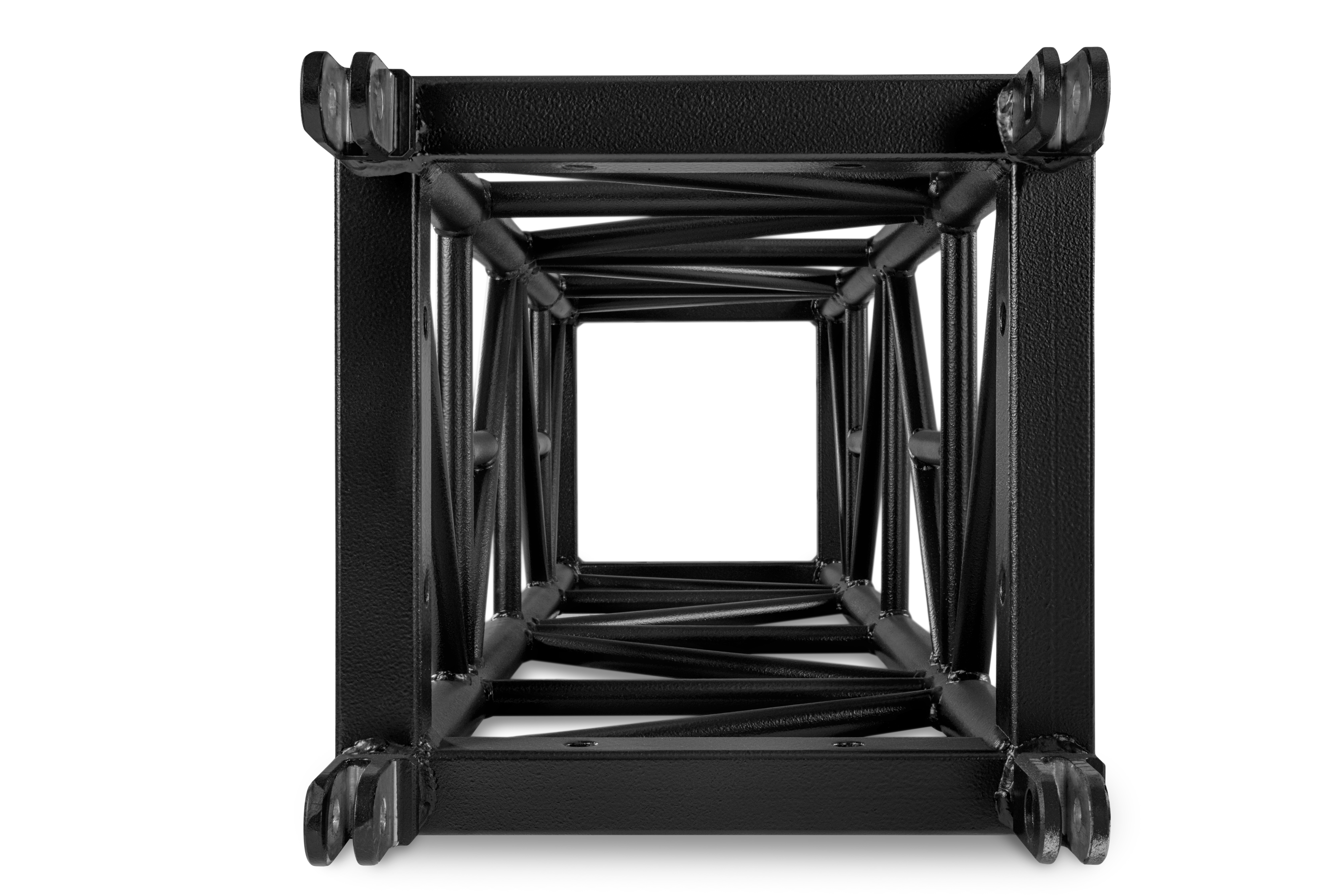 The 530 x 530 mm MILOS 530 Quatro high-strength steel tower section is made from special, high strength steel alloys and is designed for huge ground supports and roof systems with high loads. The sturdy end frames feature conection points on all sides and can easily be climbed due to its horizontal and diagonal bracings. As with all steel truss from MILOS, it features double fork couplers, zinc coated pins and has highly impact-resistant matt black paint.