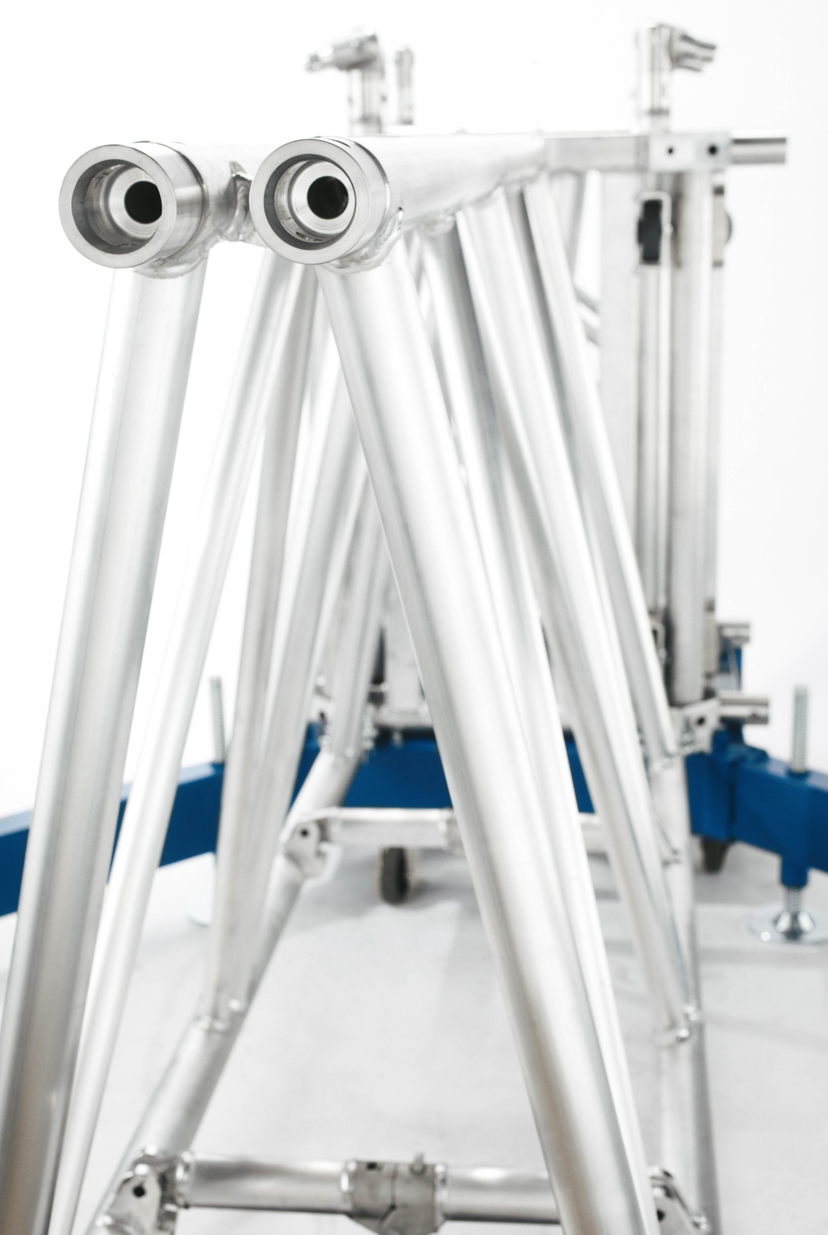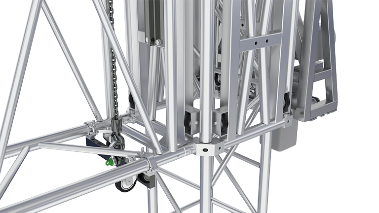High capacity M520PT ladder truss series rigging tower - 13.5 m (44.29 ft) max height - designed for your largest events and applications, with maximum loading and free-span specifications. For independent use or together with our MR3 and MR5 roofs.