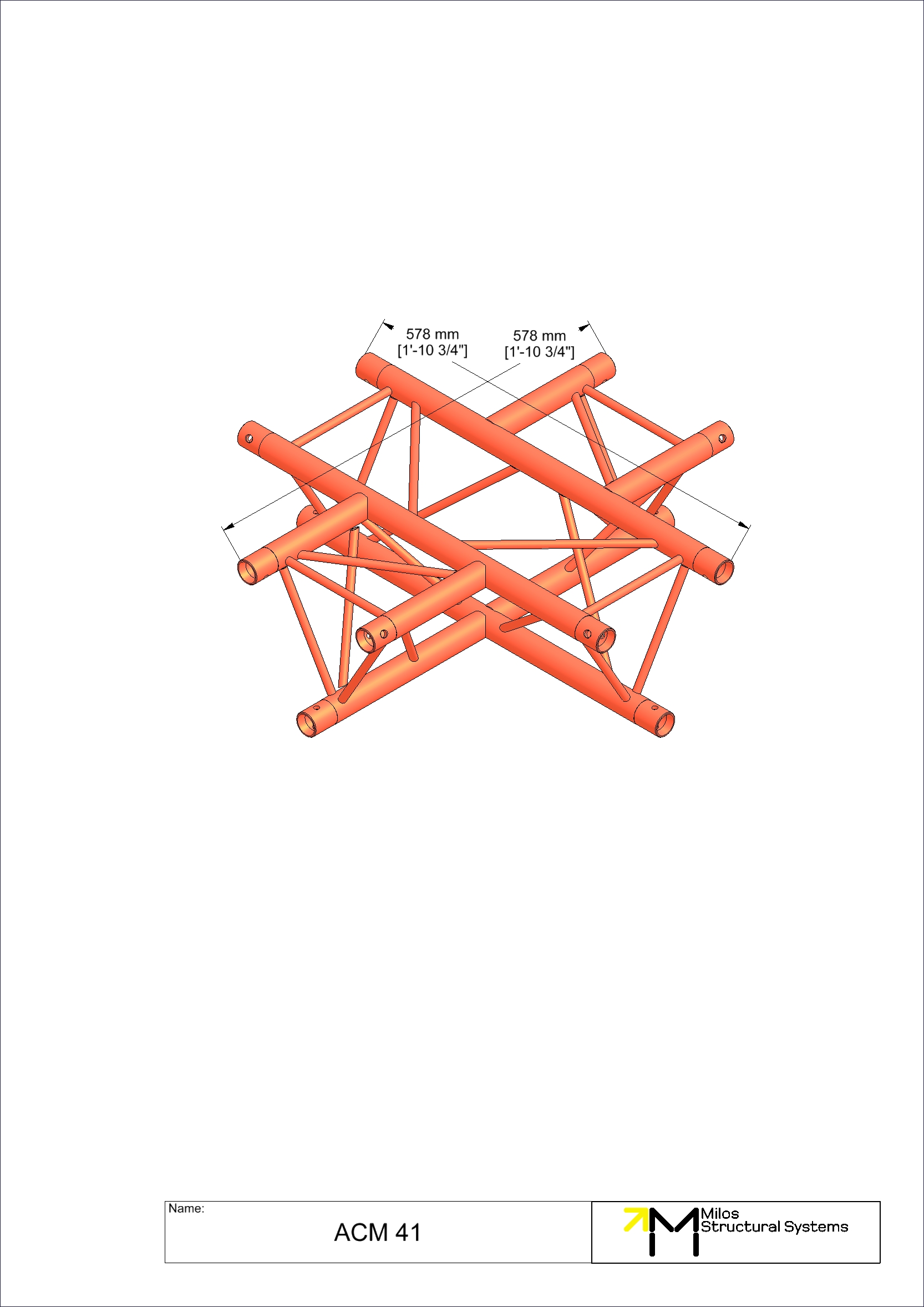 4-way cross piece. Compatible with M222 Trio conical truss. The M222 system offers outstanding weight loading capabilities despite its small size and light weight