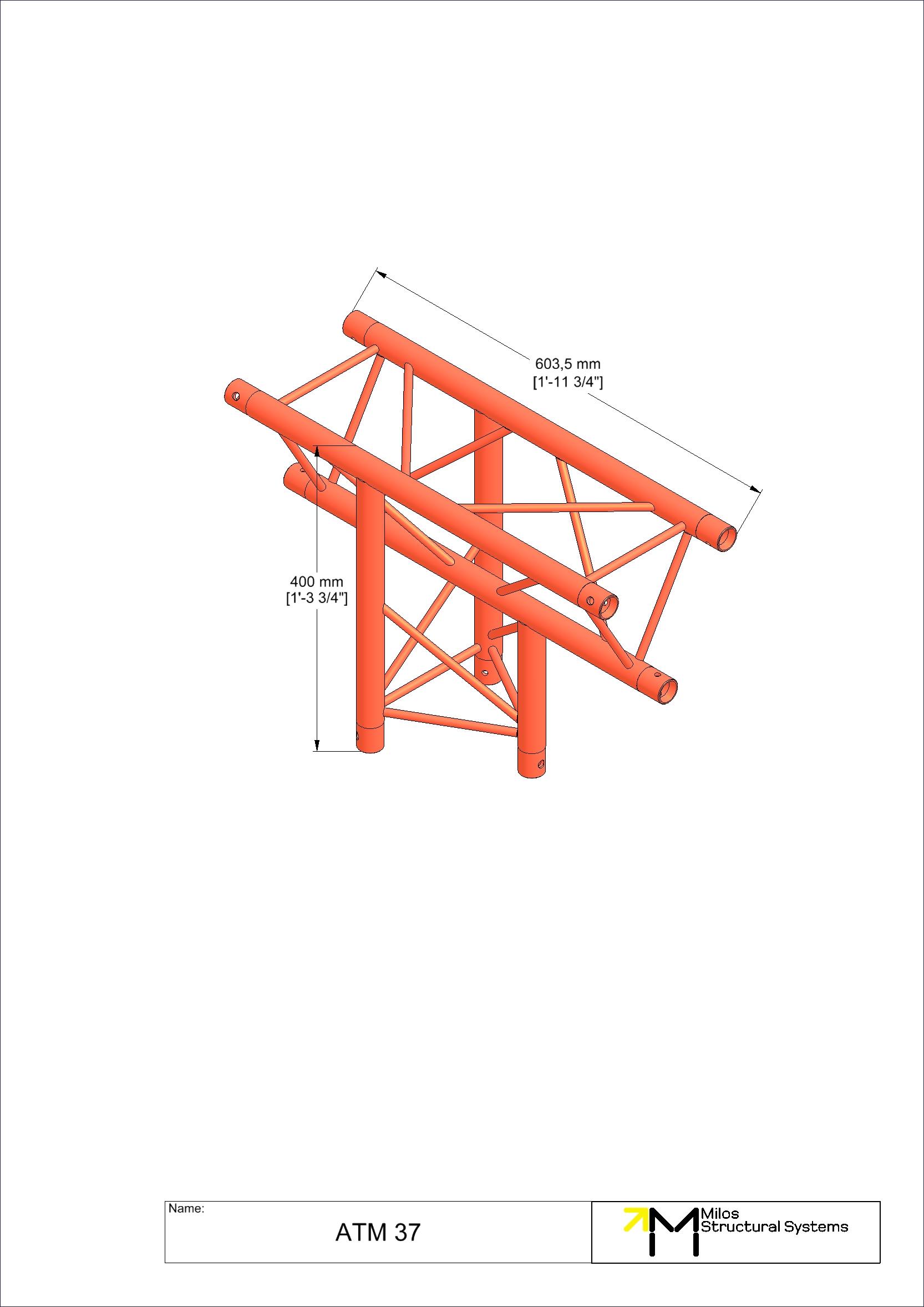 ATM37|3wayT M222 trio 3way vertical t-piece truss corner apex down 3-way vertical tee piece apex down