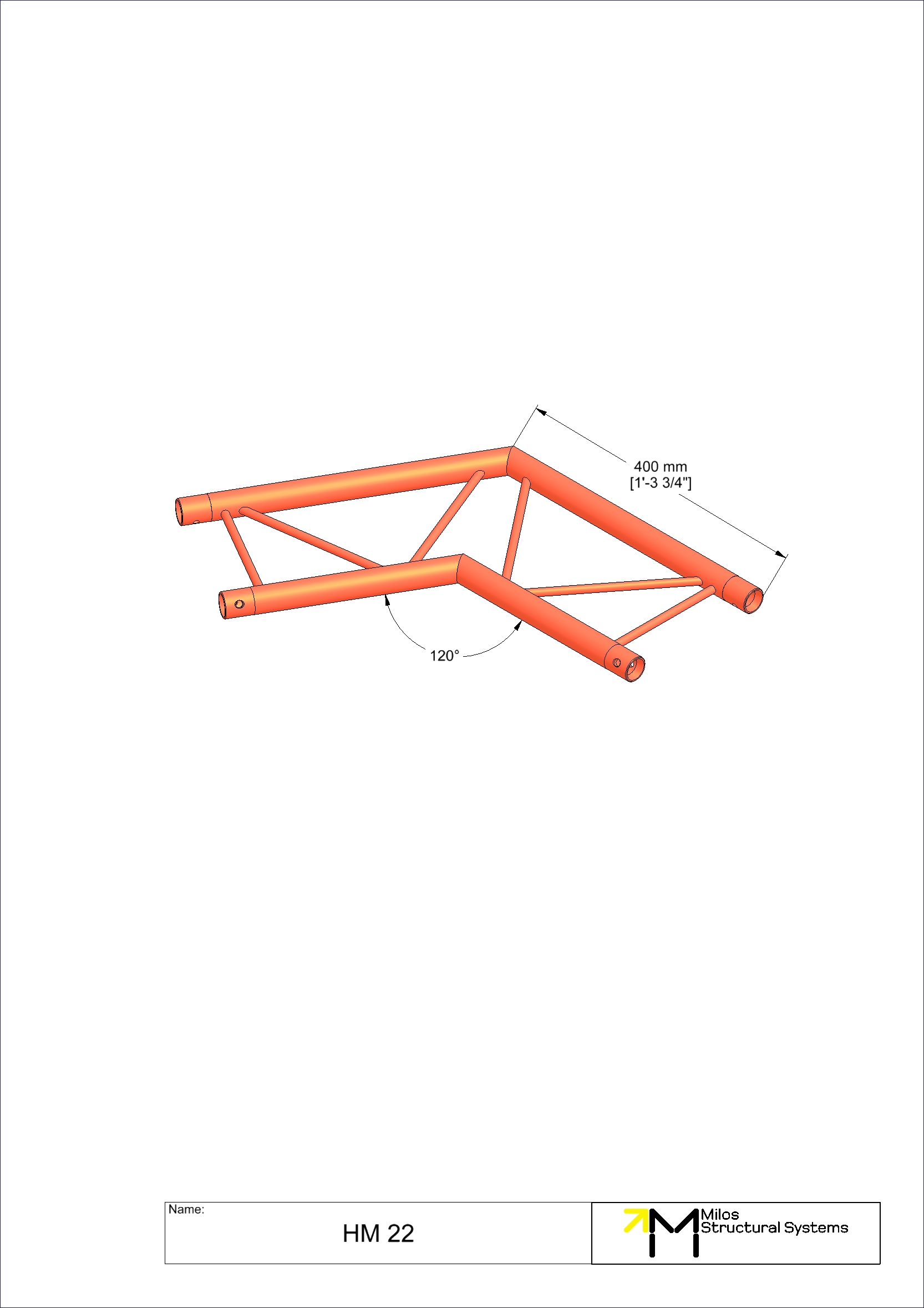 2-way horizontal corner 120°. Compatible with M222 Duo conical truss. The M222 system offers outstanding weight loading capabilities despite its small size and light weight