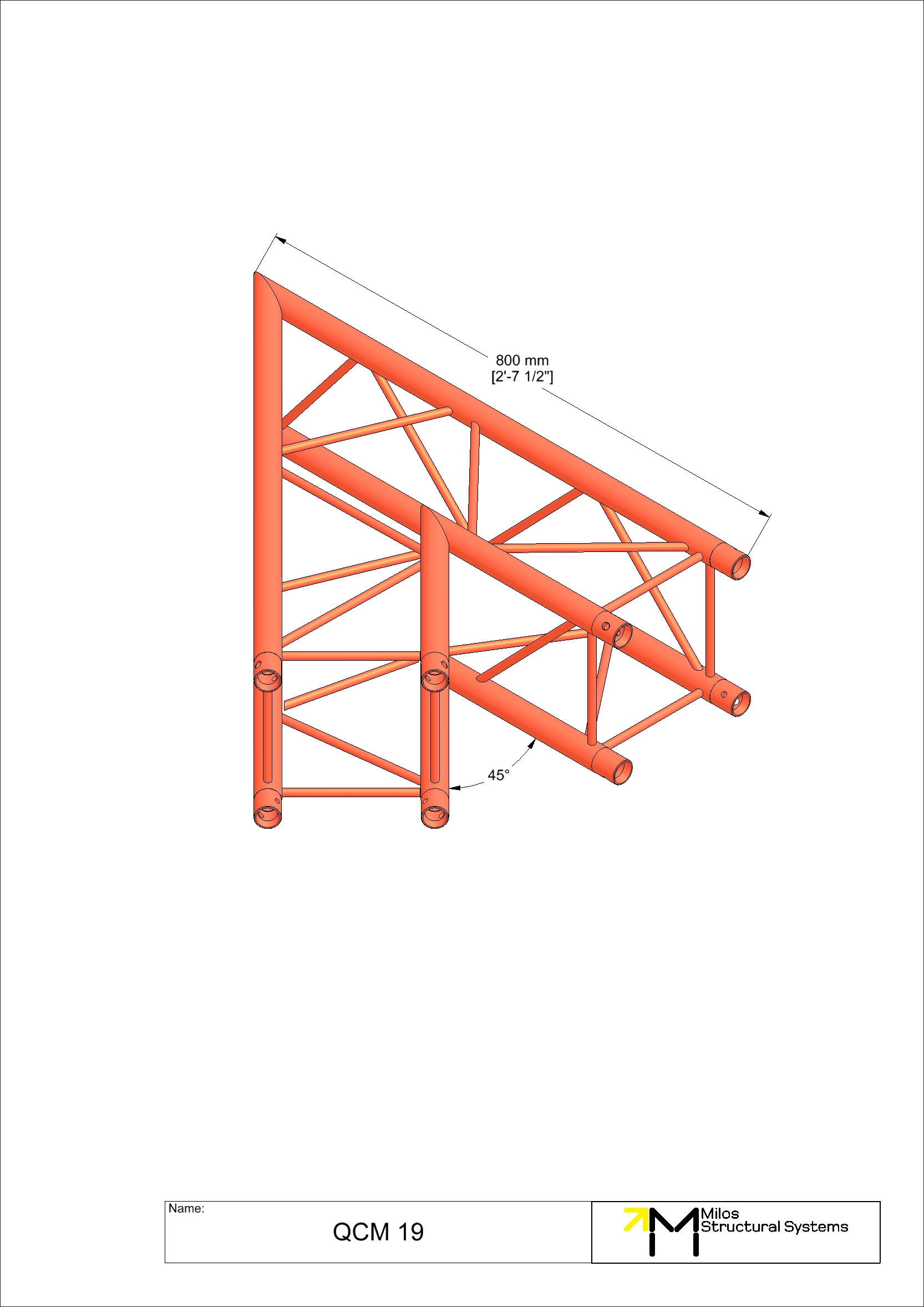 2-way corner 45°. Compatible with M222 Quatro conical truss . The M222 system offers outstanding weight loading capabilities despite its small size and light weight