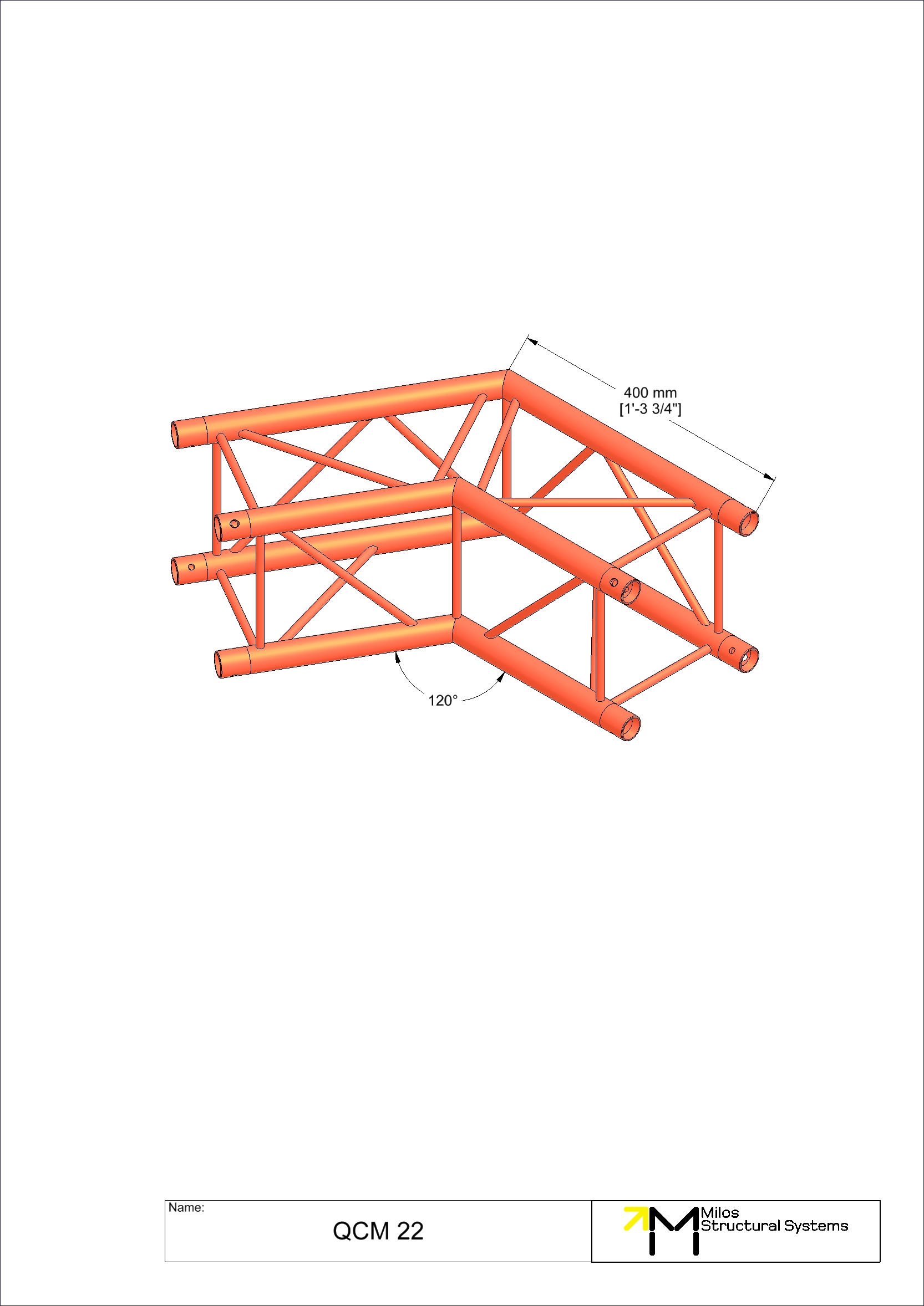 2-way corner 120°. Compatible with M222 Quatro conical truss. The M222 system offers outstanding weight loading capabilities despite its small size and light weight