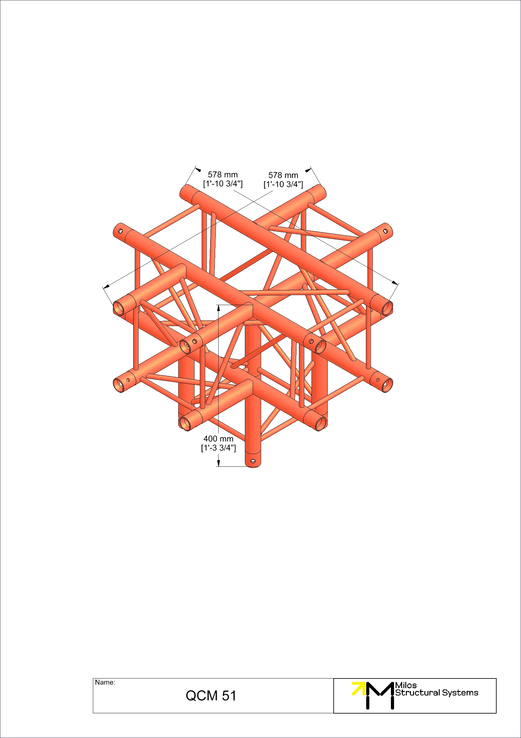 QCM51|5way M222 quatro 5way cross piece truss corner down leg 5-way cross down leg