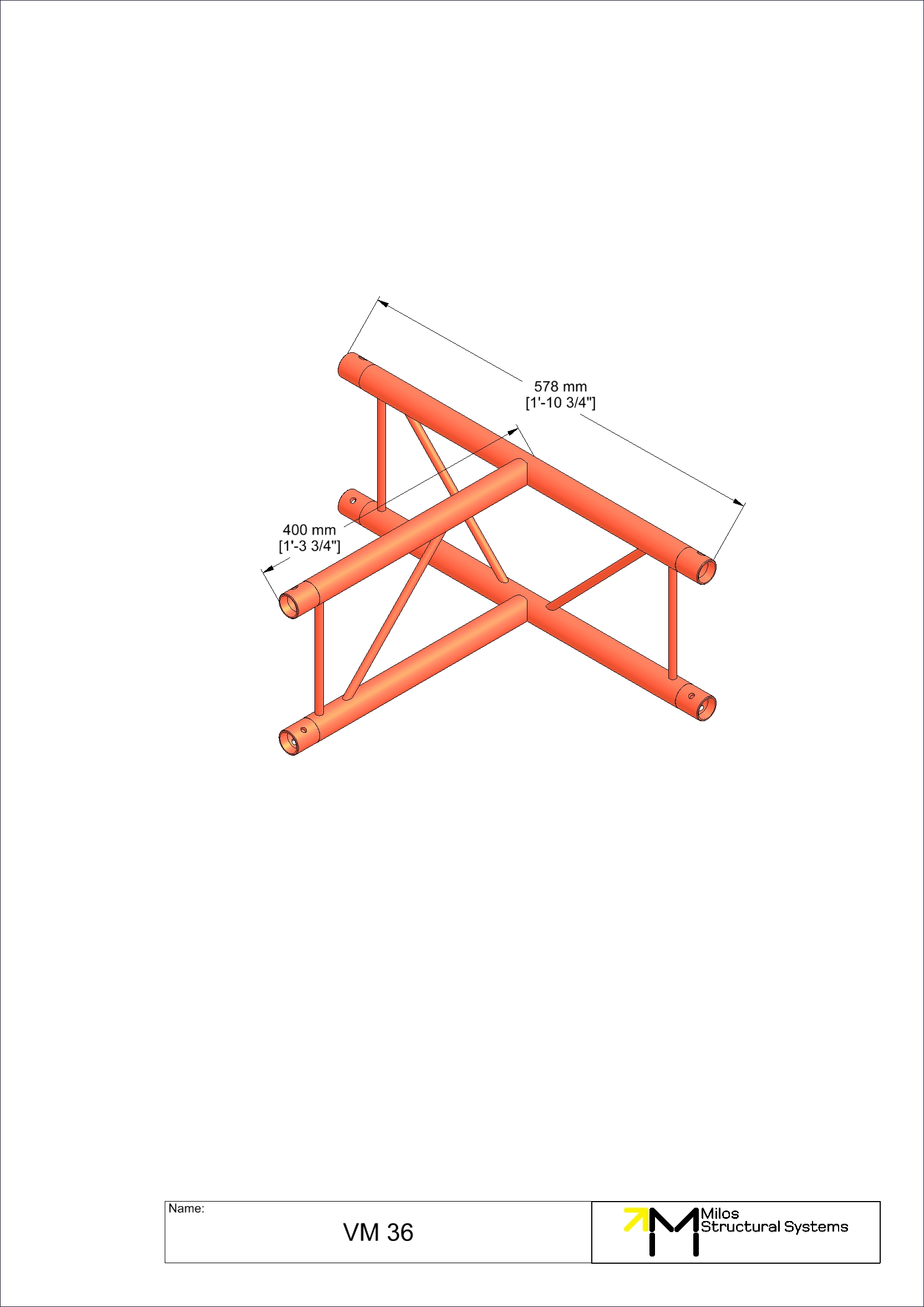 VM36|3way90dg M222 duo 3way vertical t-piece truss corner 3-way vertical tee piece