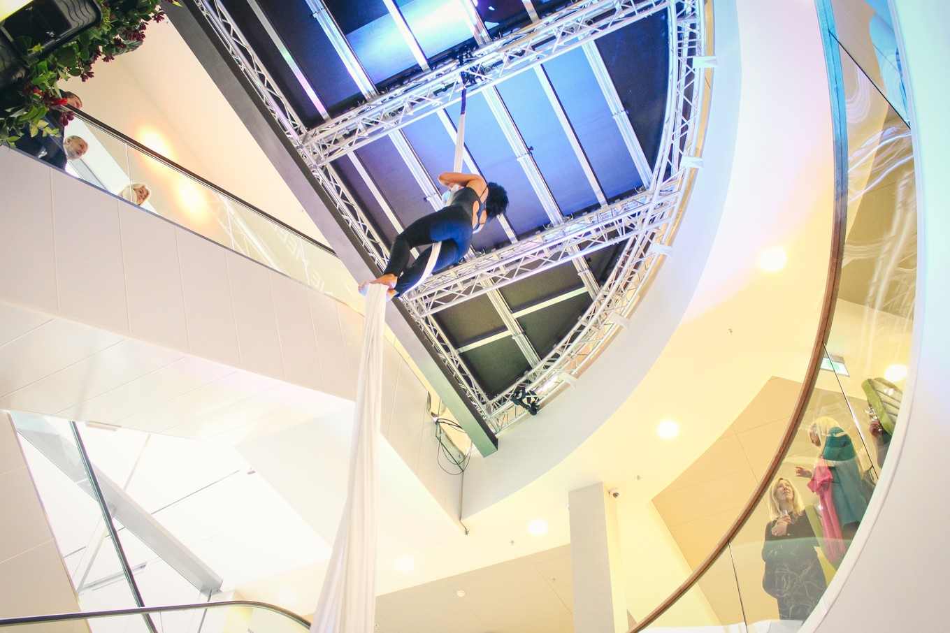 A unique “elevator” stage and truss system from Milos was installed in the 5 floor Pärnu Keskus Shopping Centre in the city of Pärnu, Estonia this past May. The Milos distributor for Estonia, Protone OÜ, was commissioned by the company PK Arendus OÜ to create a stage system that could be stored at an elevated height in the shopping centre when not in use and then lowered on demand when any multimedia event or concert is held. To fulfil their request, they used the modular and compact Milos xStage, which is made of high quality extruded aluminium, together with heavy duty M290V trussing for lighting and sound reinforcement support. The safe and reliable rising and lowering of the xStage is carried out by EXE motors from Milosgroup subsidiary Litec.