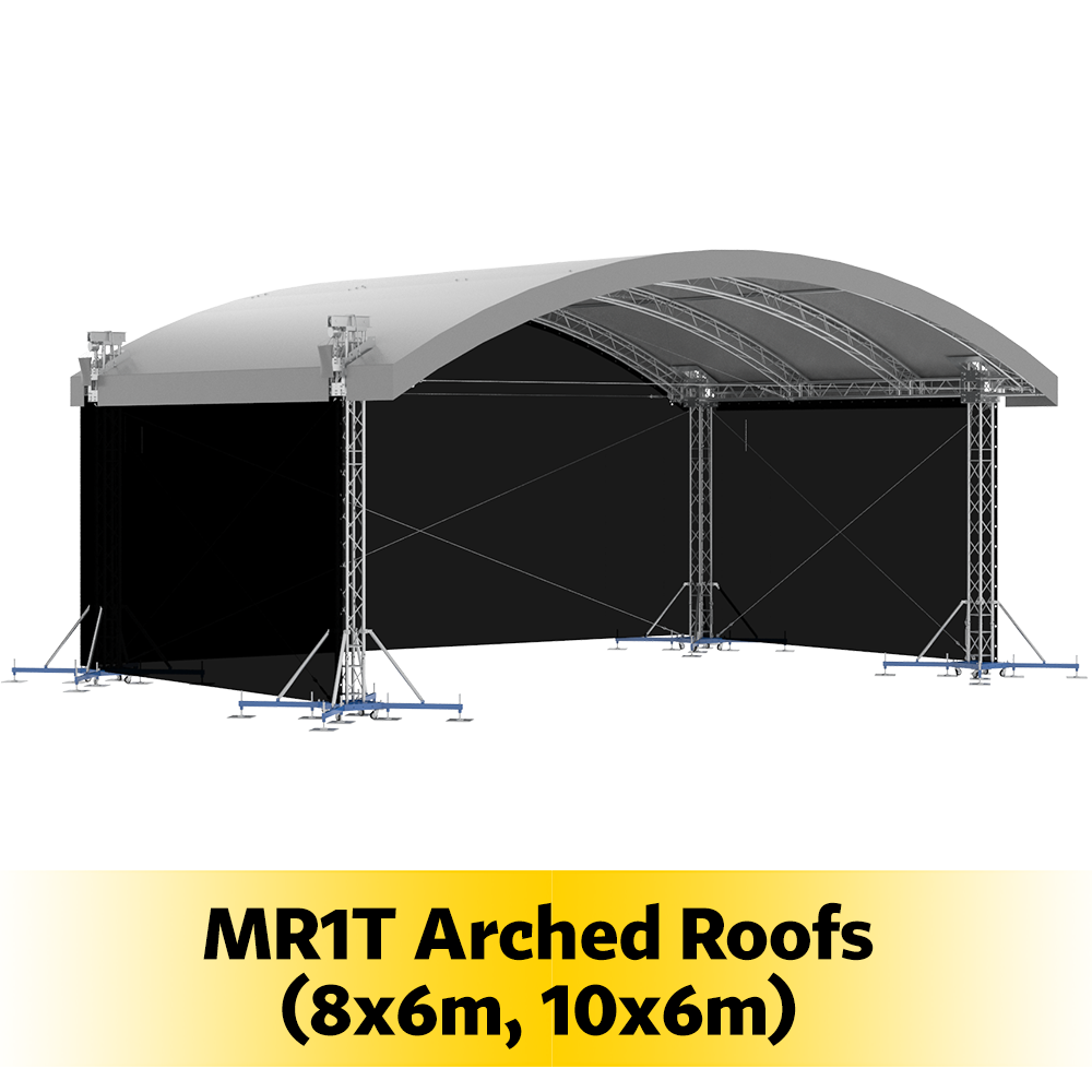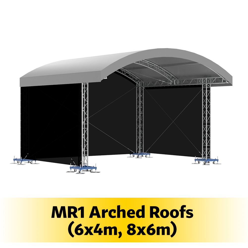 Our MILOS small and medium aluminum roofs provide the safety, strength and user-friendliness you require for your events. They are assembled from common parts and curved roof profiles and each roof has a quick build / breakdown and a compact form factor for optimized transport / storage.